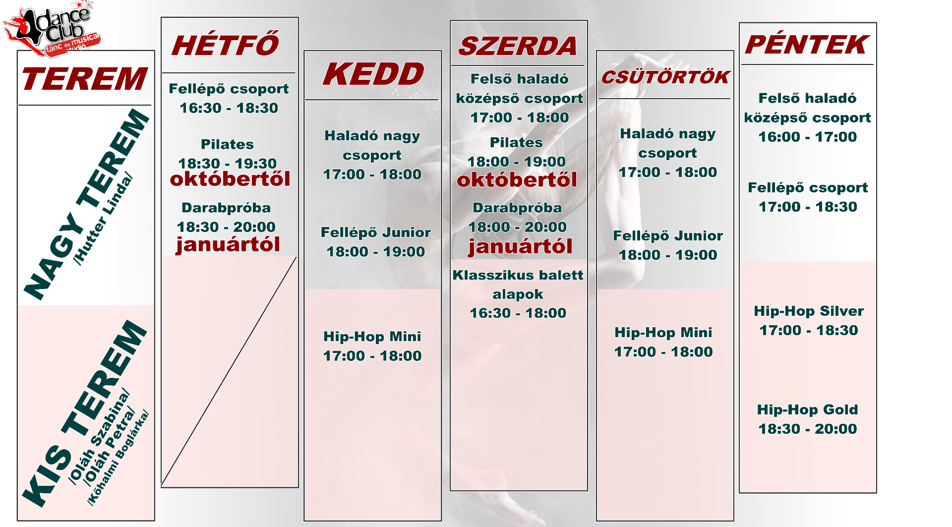 Elkészült a tanév órarendje. Jelentkezés és bővebb információ a Kapcsolat menüpont alatt.